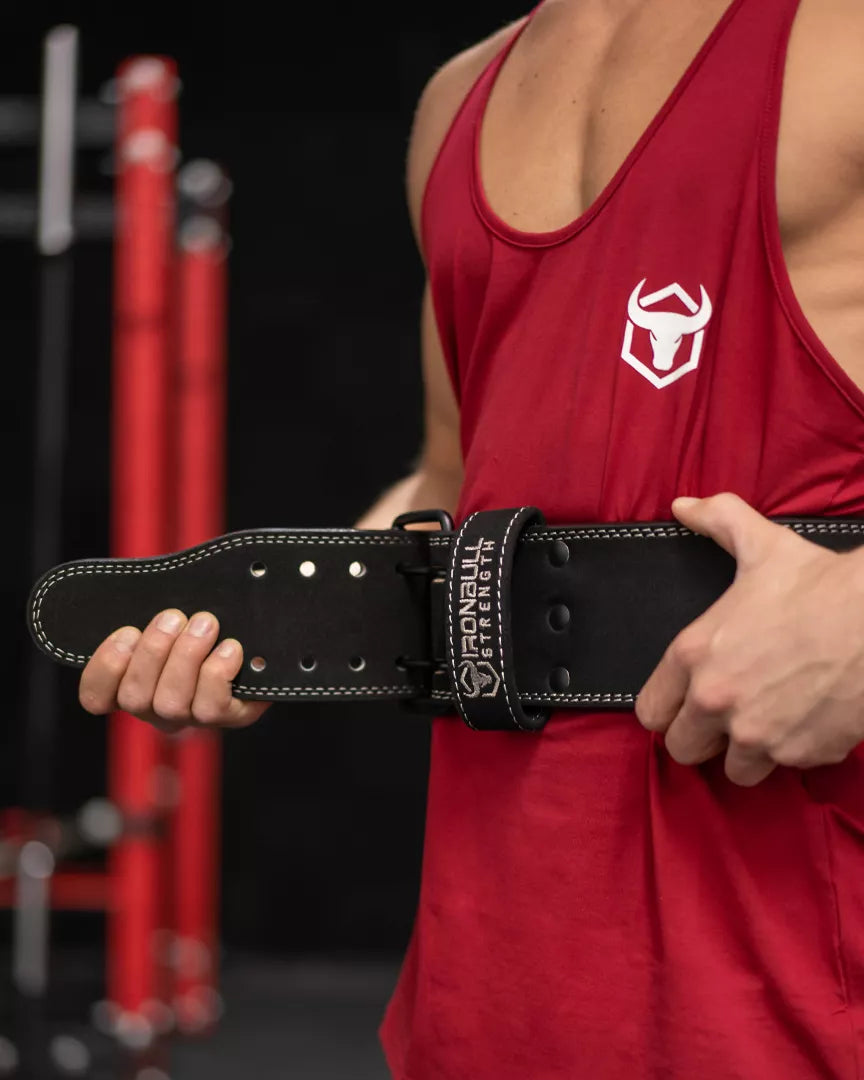 1. חגורת הIRON BULL DOUBLE PRONG היא חגורת פאוורליפטינג לכל רמות המתאמנים, מאושרת IPF בתקציב נמוך יחסית. מדובר על חגורה בעובי ורוחב של 10מ״מ, עשוייה מעור איכותי ואבזם מפלדה מצופה אבץ, שילוב חומרים אשר מבטיח שימוש מוצלח לאורך אימונים רבים. בנוסף, ניתן לבחור חגורה צבעונית, דבר מעט נדיר יותר בתחום: לבחירת צבע: שחור/אפור/כחול/אדום.